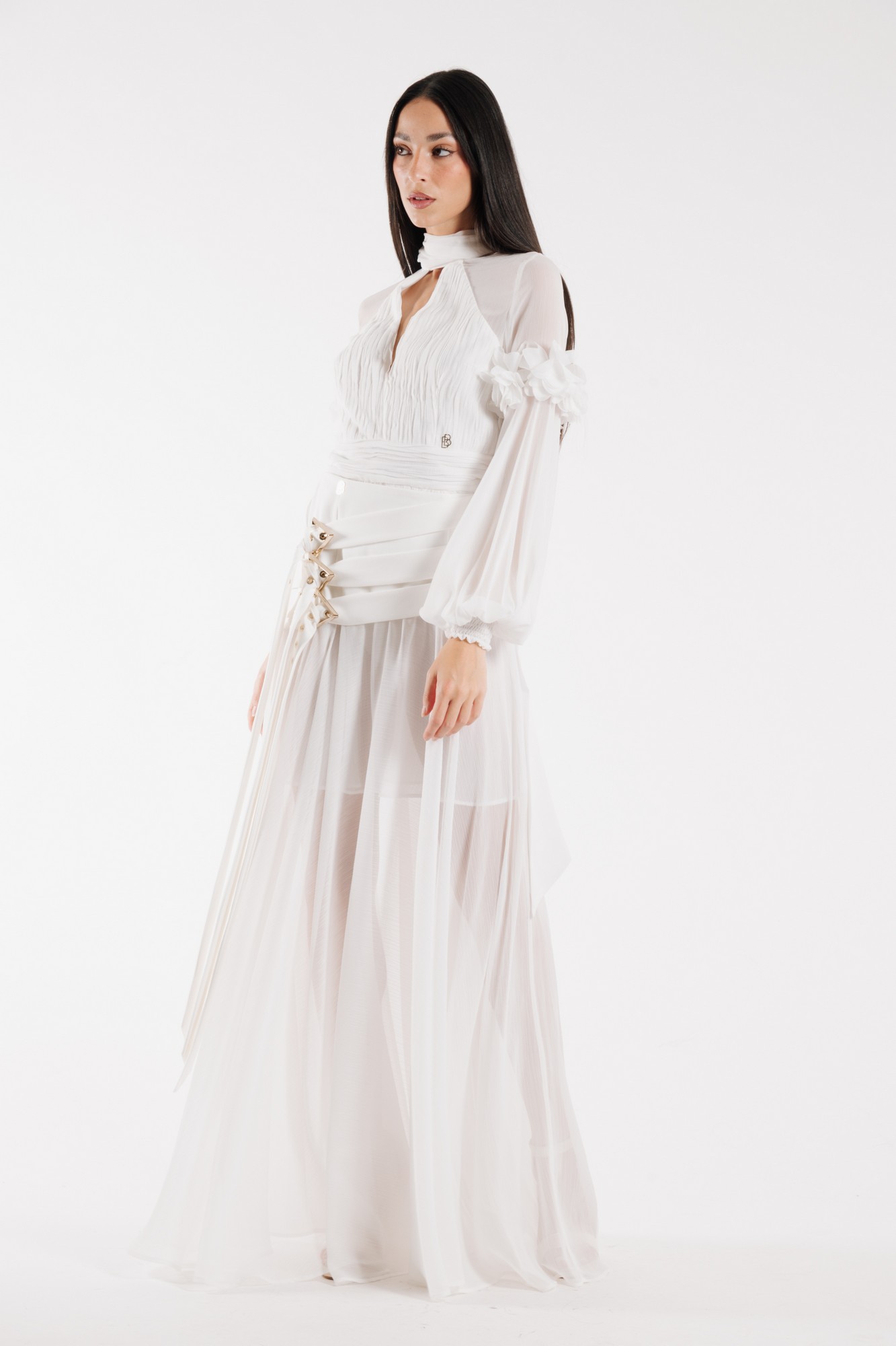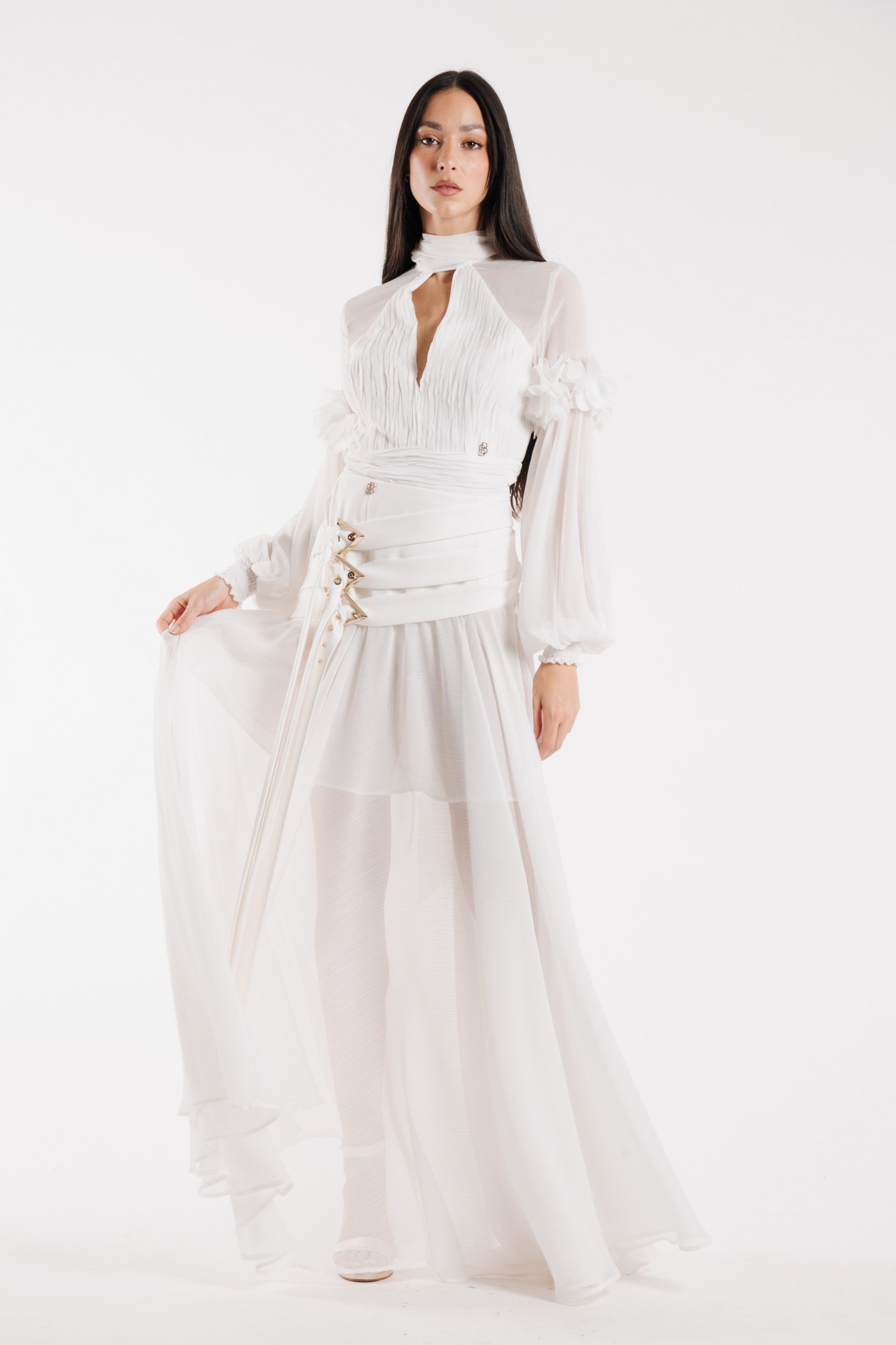 GONNA LUNGA SEMI-TRASPARENTE CON FIBBIE E LACCI