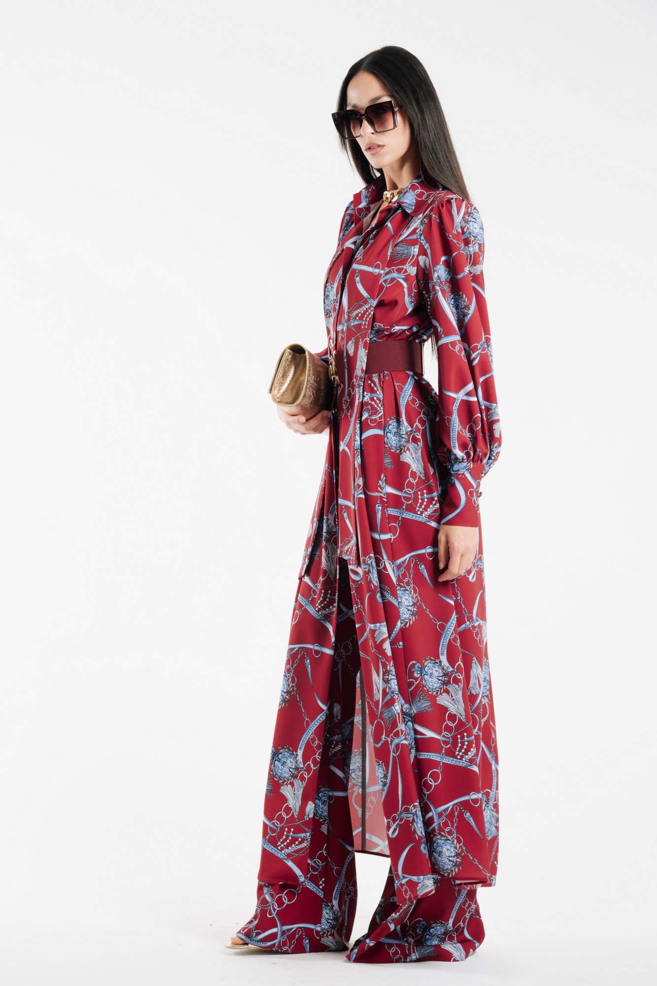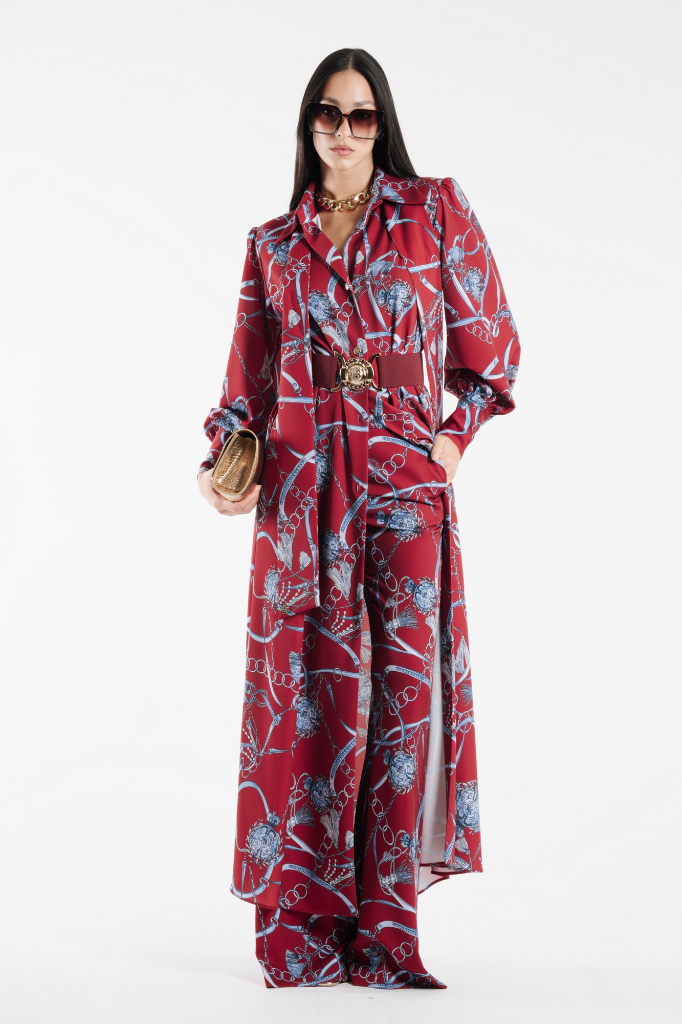 LONG CHEMISIER/ABITO STAMPATO CON BOTTONI METALLICI DORATI