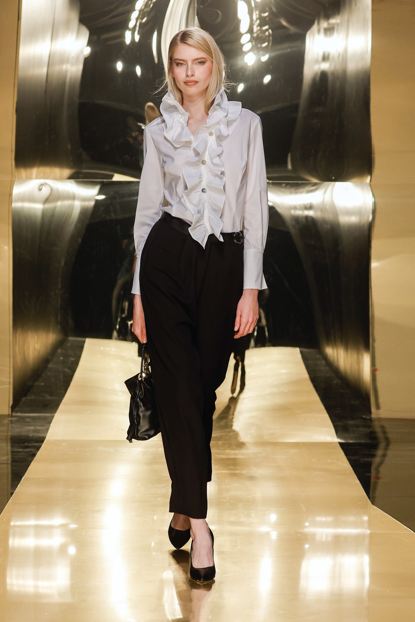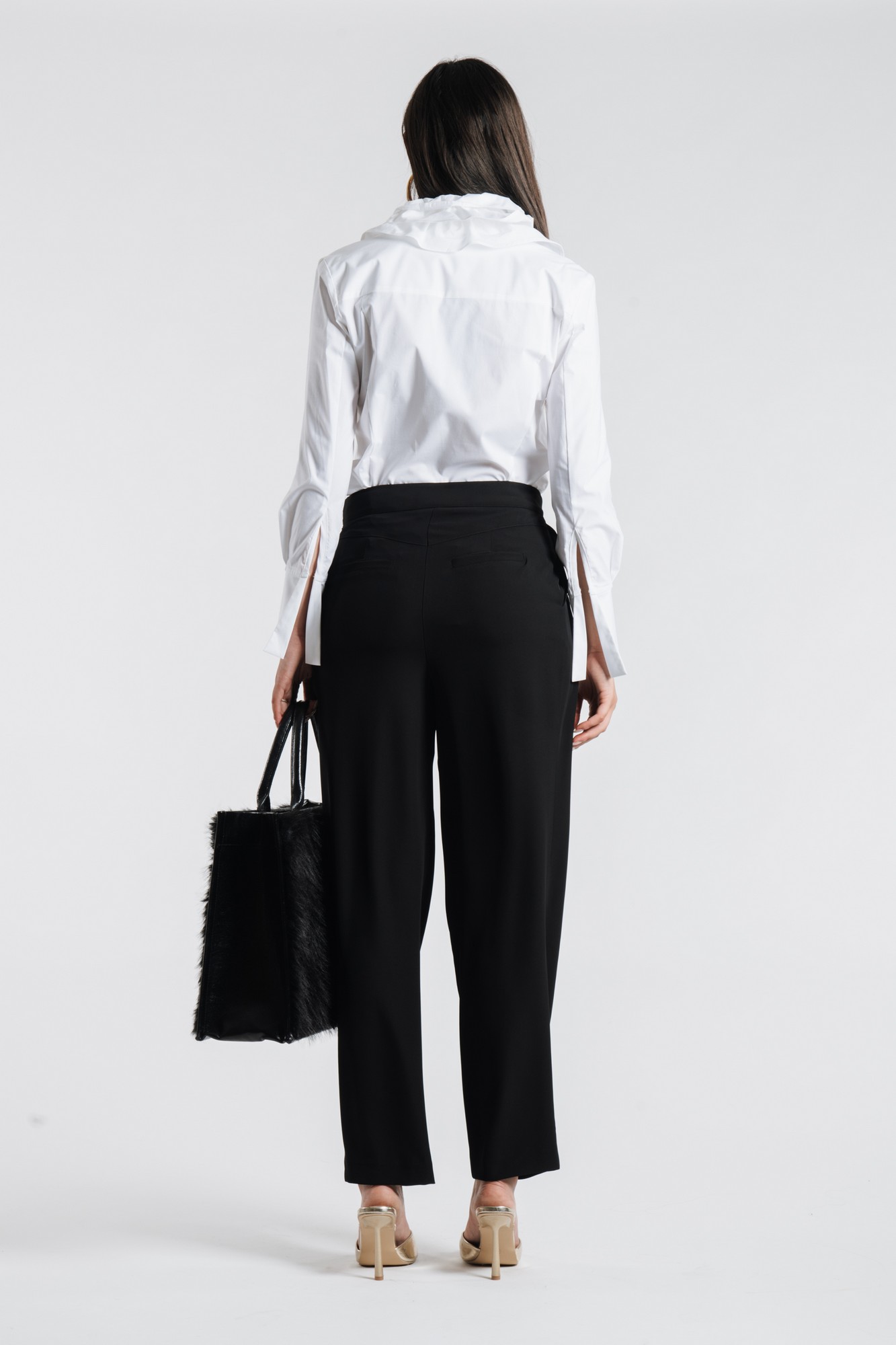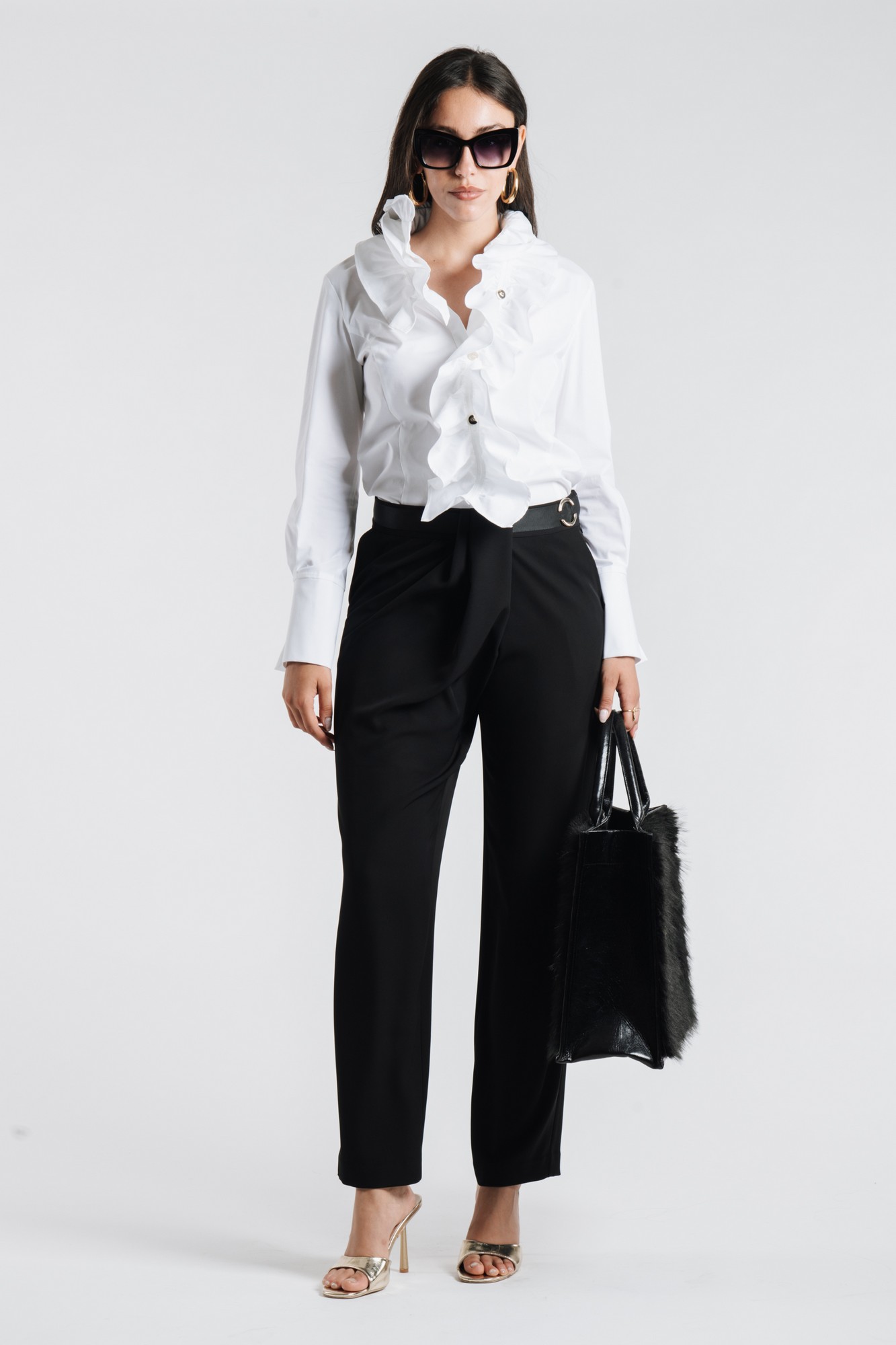 PANTALONI ELEGANTI CON FIBBIA METALLICA DORATA E ZIP LATERALE