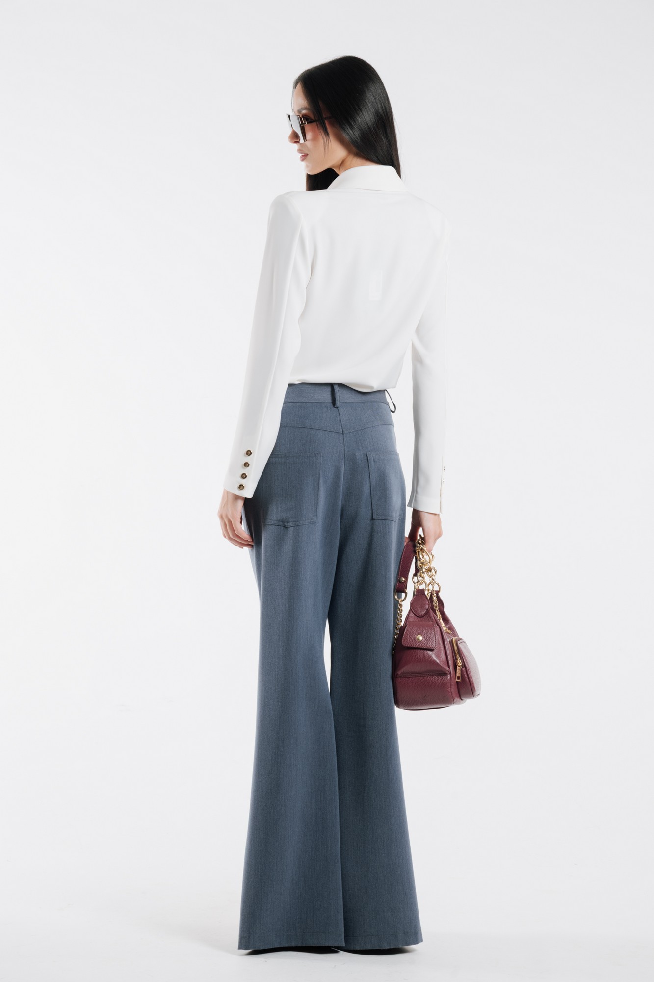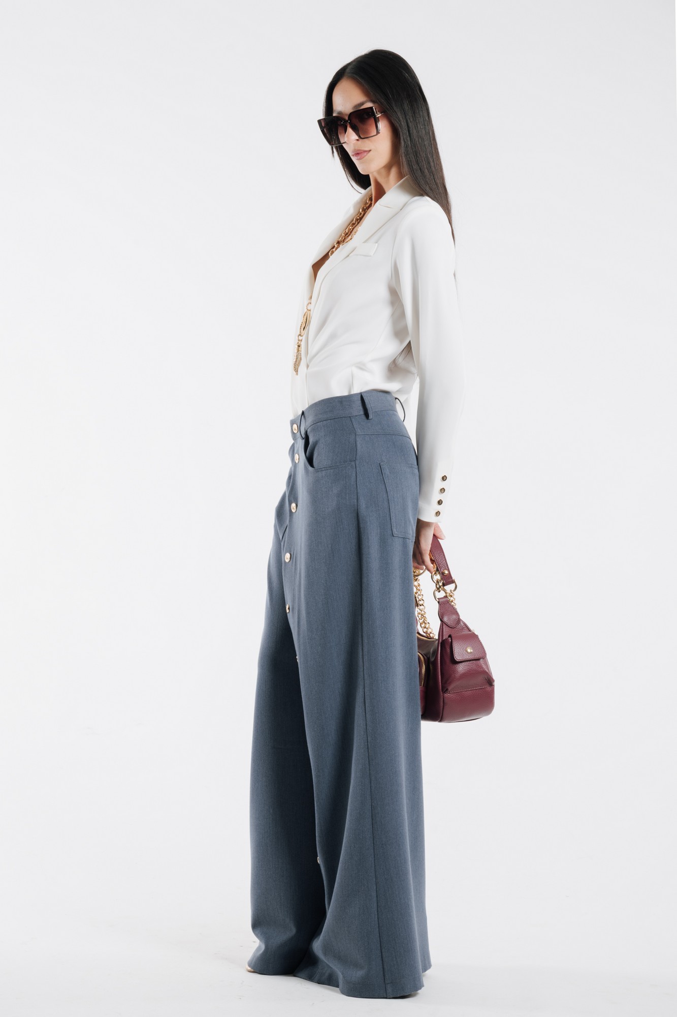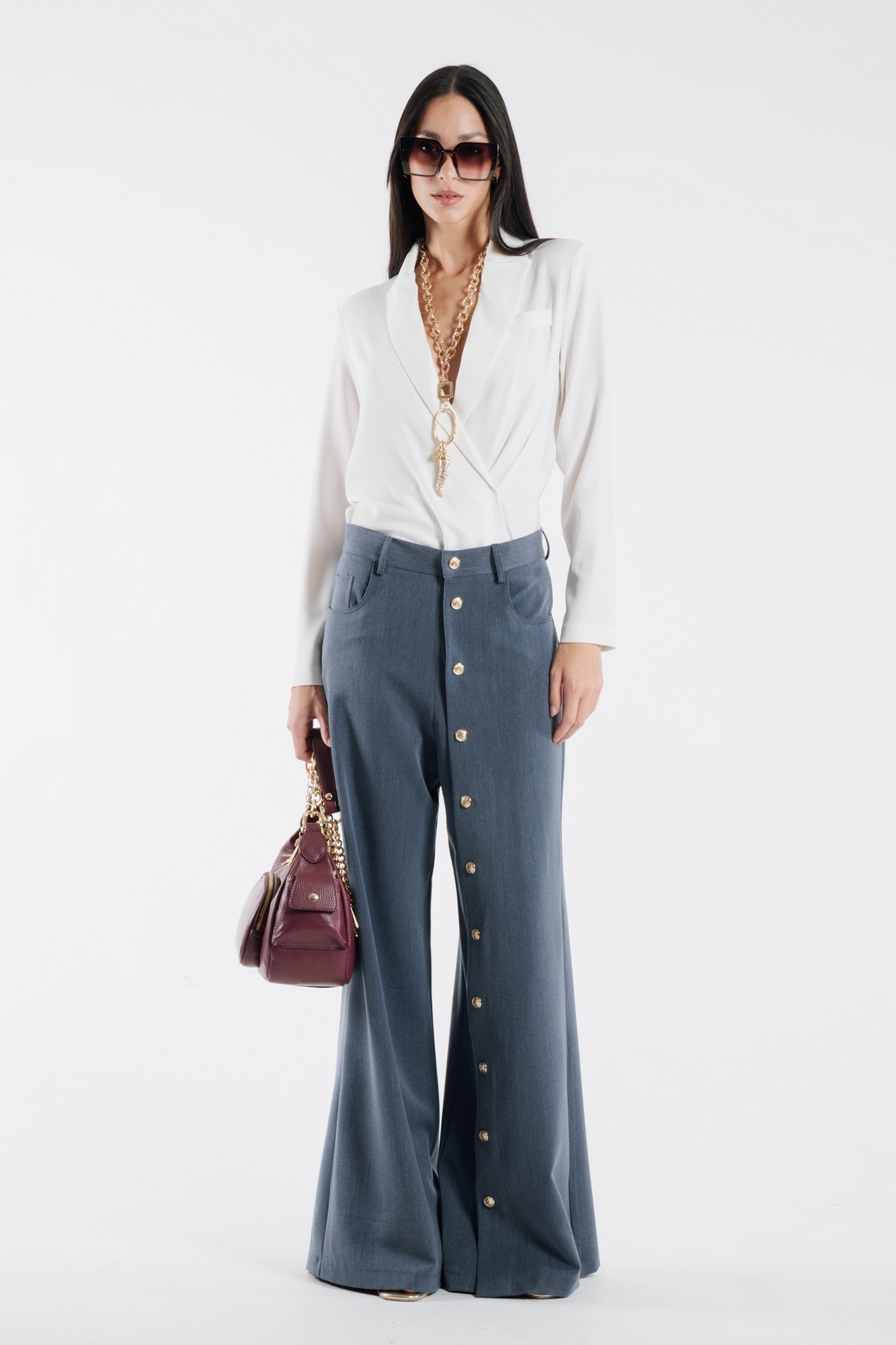 PANTALONI OVER CON BOTTONI METALLICI DORATI