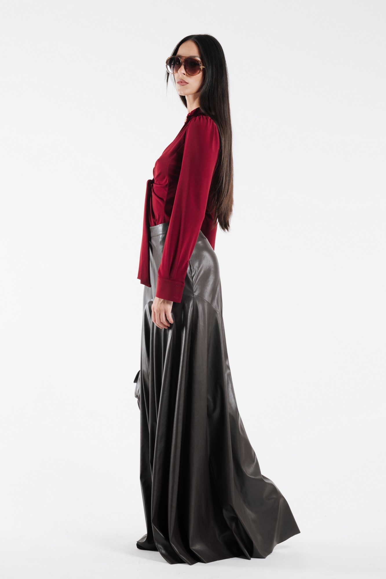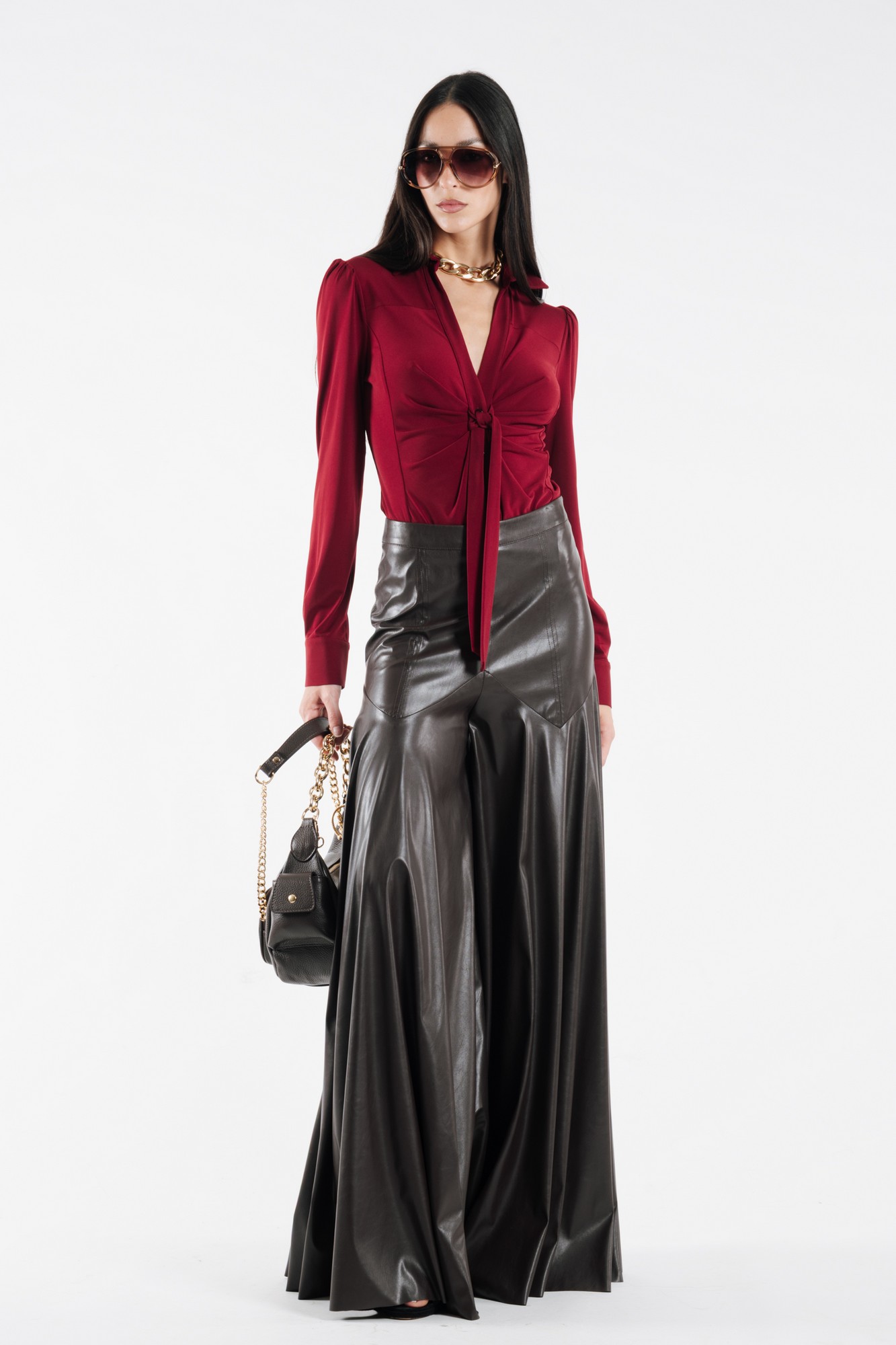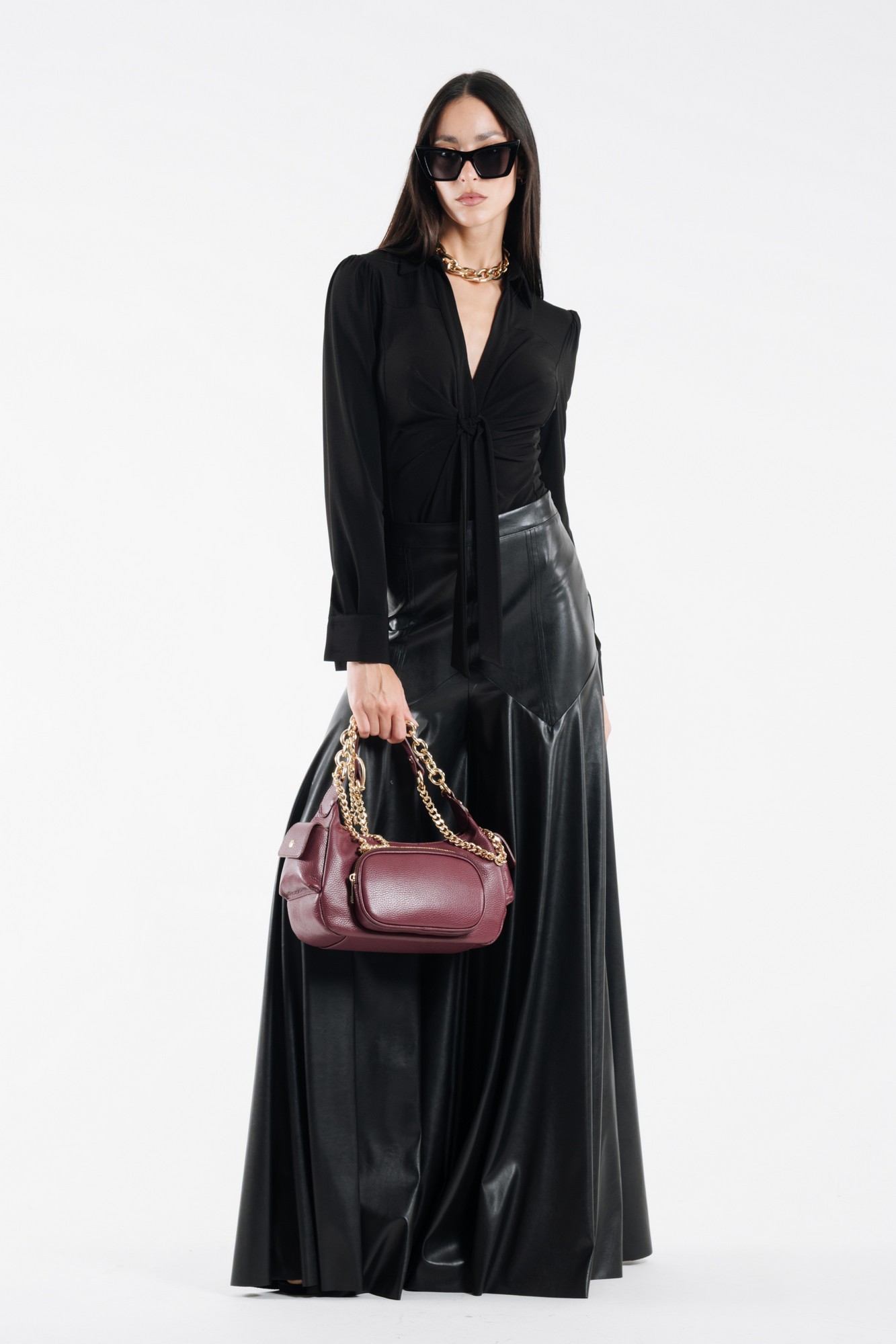 PANTALONI EXTRA OVER IN ECO-PELLE CON ZIP LATERALE